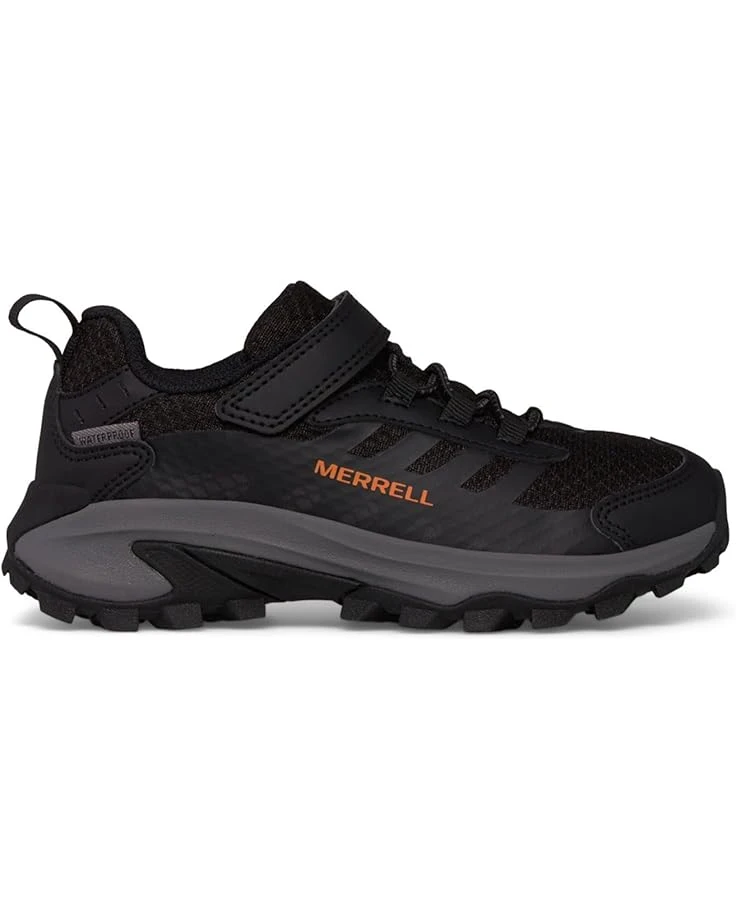 - Keep those young feet perfectly dry and comfortable while offering them a secure and flexible fit as they step out for an adventurous day by opting for the Merrell® Kids Moab Speed 2 Low A/C Waterproof Hiking Shoes. Featuring a lightweight, seam-sealed waterproof construction with an adjustable hook-and-loop strap and a traditional lace-up closure, these shoes are constructed with a durable synthetic upper, a recycled PET polyester lining, and a FloatPro Foam™ footbed and midsole for enhanced cushioning and a responsive stride.